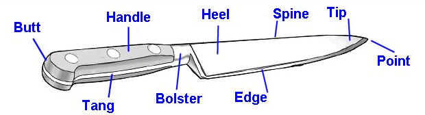 The Paring knife (no picture shown) is a small 3 to 5" long blade mostly used for peeling and small work. (you already know that...)